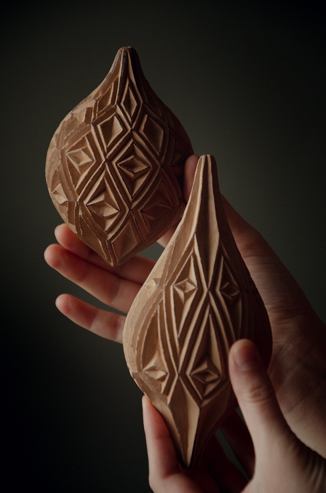 Забавно, но к карвингу я пришла в первые месяцы работы с глиной, а потом потерялась в желании «всё попробовать» и сомнениях: «а вдруг надо делать вот это? вдруг “моё” — совершенно другое?». Чтобы вернуться к резке узоров, мне понадобилось четыре года наблюдения за чужими работами и примерки на себя других техник :)