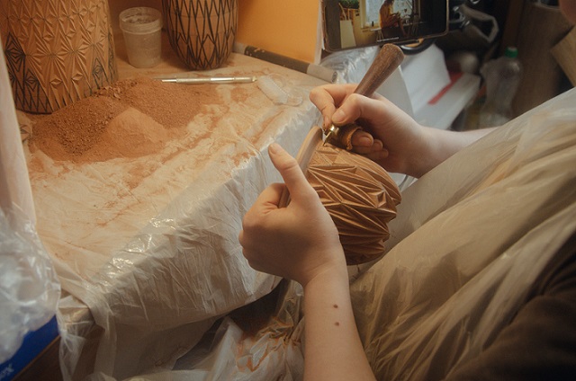 У меня домашняя мастерская «поработал-поспал» — всё в одном месте :) Я выделила под керамику комнату, и здесь гончарю, вырезаю, лью и глазурую. Мне нравится, что в любое время могу помять глину, не тратя время на дорогу, не отвлекаясь на внешние обстоятельства и людей. Когда-нибудь хочется построить дом с мастерской, чтобы было просторно и можно было создавать большие объекты.
