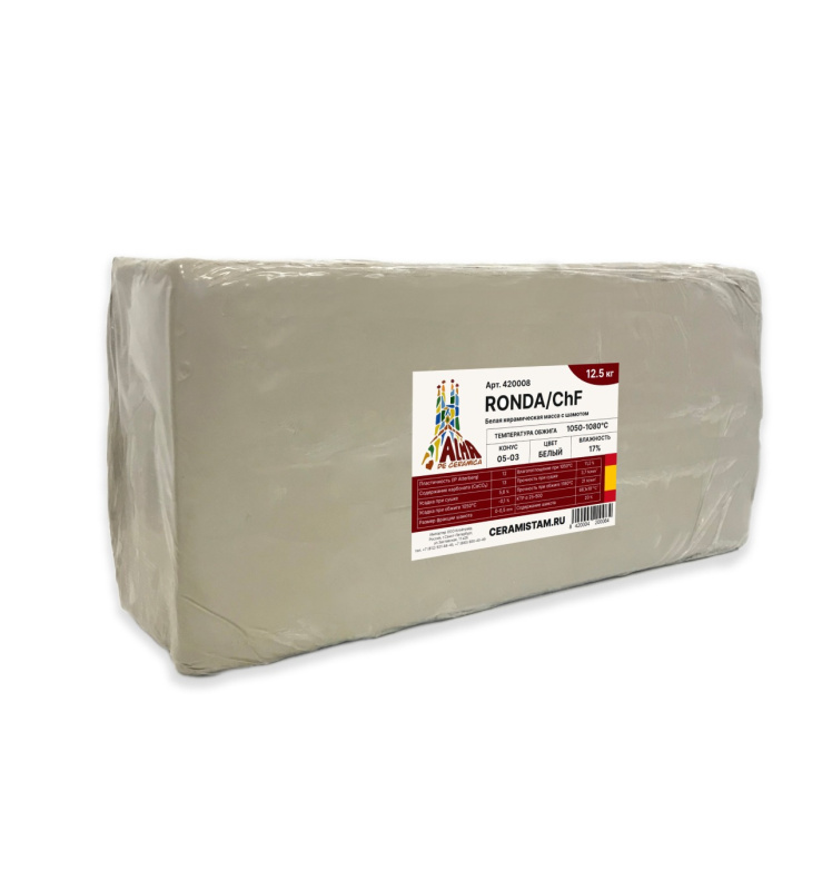 Масса RONDA/ChF от Alma de Ceramica белая низкотемпературная керамическая масса с шамотом в упаковке по 12,5 кг.