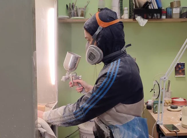 - Если вы наводите глазурь самостоятельно из черепка, обязательно пользуйтесь маской с защитой от пыли. Если работаете с готовой суспензией кистью или поливом, маска не нужна. Для работы с пульфоном маска строго обязательна.