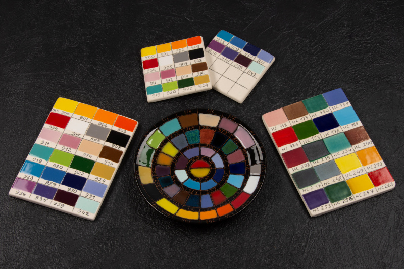 Пигменты.Представляют собой чистый пигмент, который перед началом работы смешивается с водой. Не содержат фритту и флюс, нетоксичны, безопасны. Эти краски хорошо подходят для прорисовки мелких деталей. Для получения яркого насыщенного цвета достаточно одного слоя. Пигменты трудно нанести равномерно по площади, поэтому они не подходят для сплошного покрытия изделия. Кроме того, они проникают в глину, и в случае ошибки будет трудно удалить мазок с поверхности. Поэтому с ними следует работать особенно аккуратно.