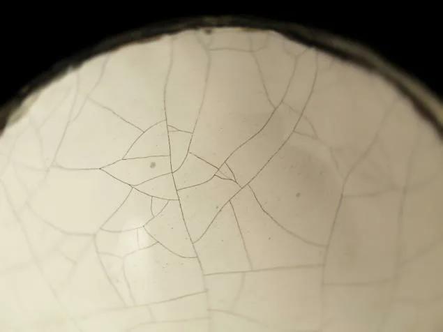 Цек - это тонкие (волосяные) трещины на поверхности глазури. Существует миф о “закрытом” цеке, когда красивый узор из трещин в глазури есть, но поверхность ее совершенно цельная. К сожалению, так не бывает, стекло - хрупкий материал, и образовавшаяся трещина пронизывает его насквозь, проходя через так называемый промежуточный слой (обсудим ниже) до самого черепка. Но в зависимости от материалов сами трещины (то есть расстояния между их краями) могут быть больше или меньше, и иногда они настолько незначительные, что даже не прокрашиваются пигментом. Скорее всего такие вот, видимые глазу, но очень плотно сжатые трещины и послужили основанием для мифа о “закрытом” цеке.