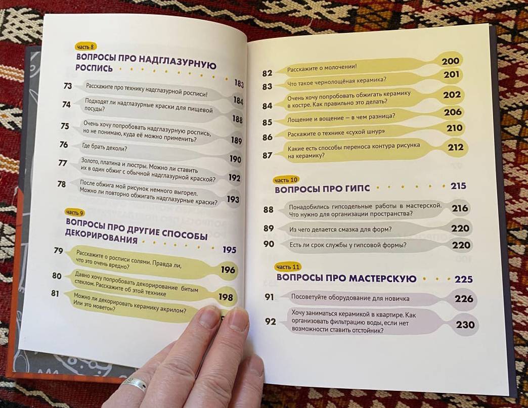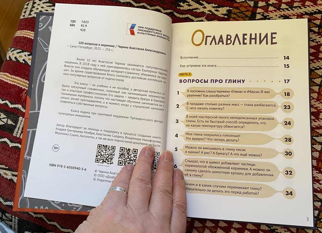 Книга "100 вопросов о керамике". Автор Анастасия Чарина - профессиональный керамист, член Союза Художников России, автор блога "Керамика на крыше". Эта книга - не учебник и не пособие, а авторская попытка собрать нескучный справочник, полезный как начинающим керамистам, так и опытным профессионалам. Его задача - закрыть бреши в базовом понимании материала, потому что настоящее обучение начинается не с умных речей преподавателя, а в момент, когда у слушателей начинают появляться собственные вопросы. Издательство: "Большие города" Количество страниц: 254 Переплет: Твердый Размер: 21,5*15 см