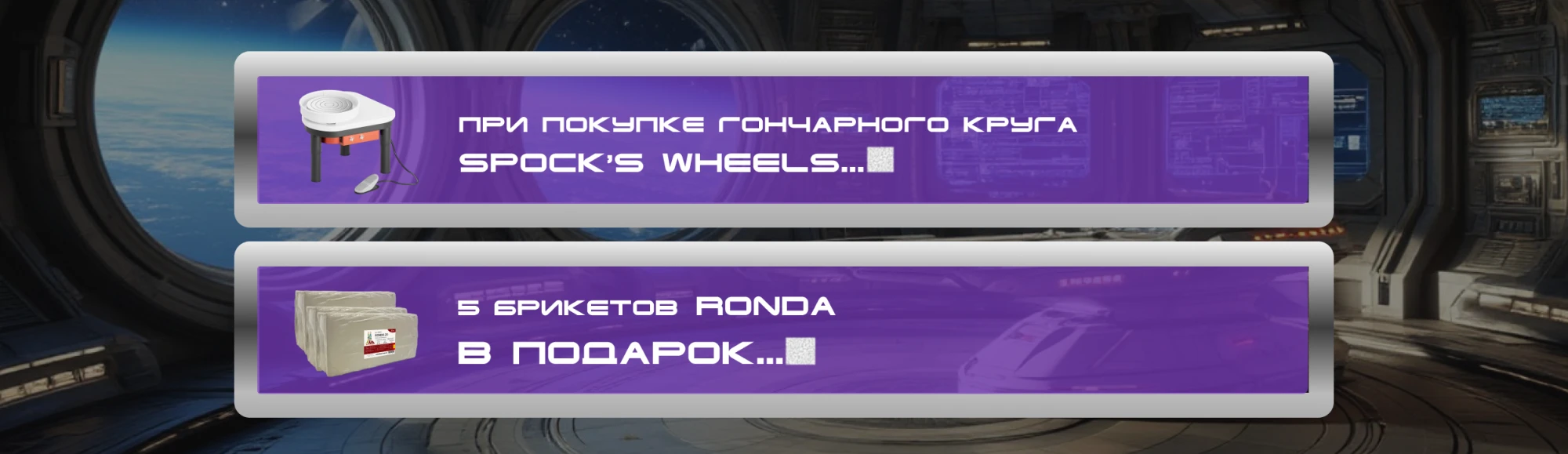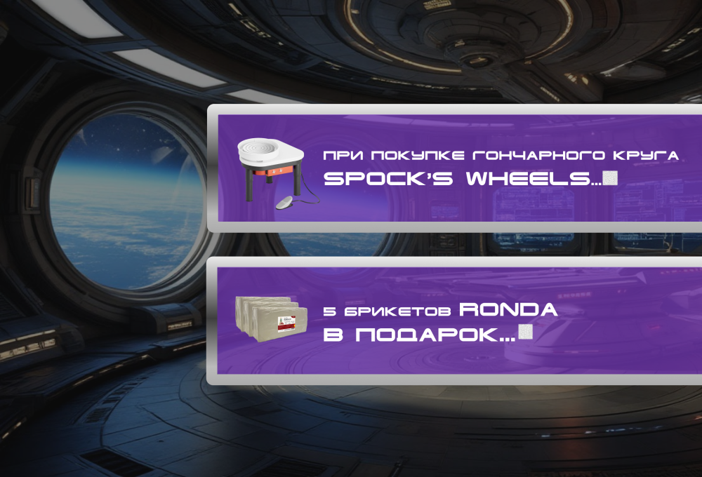 при покупке гончарных кругов Spock's Wheels Enterprise или Discovery вы получаете 5 брикетов керамической массы Rоnda в подарок!